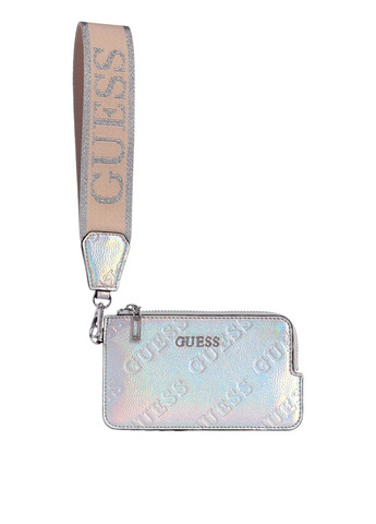 Картхолдер Guess. Этот культовый картхолдер из прочного материала - экокожи, с фирменным логотипом бренда спереди в виде серебристой фурнитуры и с тисненым логотипом по всей поверхности. Стильный и функциональный картхолдер в перламутровом серебристом цвете. Если вы ищете модный картхолдер, в который поместится все, что вам нужно, обратите внимание на данный картхолдер. Он имеет пять прорезей для карт, одно отделение на молнии и одно дополнительное отделение. Есть широкая текстильная ручка для переноски, пристегивается с помощью карабина к картхолдеру. Отличное качество. Размер: 14 * 8* 1 см.