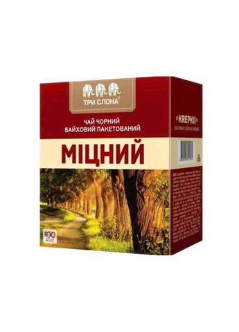 Чай пакетированный черный "Прочный" (100штх1,5г) ТМ "ТРИ СЛОНА" Обладая приятным вкусом и ароматом, этот крепкий чай оказывает организму тонизирующее действие. Отличается интенсивным насыщенным цветом и сильной терпкостью. Вес: 100г Бренд: ТРИ СЛОНА Страна фасовки: Украина