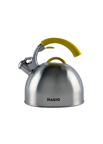 Чайник со свистком Magio MG-1191 2.5 л серебристый Чайник со свистком Magio MG-1191 изготовлен из нержавеющей стали, способствует быстрому и равномерному нагреву и распределения тепла. Благодаря свистку Вы точно будете знать о моменте закипания воды. Характеристики: Тип: чайник Вид: со свистком Тип ручки: фиксированная Материал: нержавеющая сталь Материал ручки: силикон Обьем: 2.5 л Форма: круглая Подходит для всех типов плит Цвет: серебристый Производитель: Magio