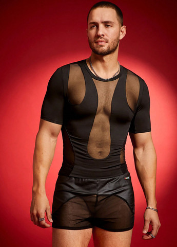 Мужская футболка FeverCity. Летняя чёрная футболка с сеткой. Круглый вырез горловины и короткие рукава. Футболка выполнена из слегка эластичного трикотажного полотна. Уход: машинная стирка или химчистка.