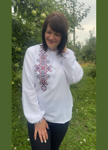 Красивая вышиванка с длинным рукавом и воротником-стойкой на завязочках. Вас обрадуют: оригинальные вышивки, комфортность, правильный крой, приятная ткань, высокое качество, которое после стирки не деформируется и не меняет цвет. Ткань – домотканое Размеры: 48-50 (длина – 70 см, ширина блузки по груди – 55 см, рукав – 72 см) 56-58 (длина – 74 см, ширина блузки по груди – 67 см, рукав – 72 см) 58-60 (длина – 74 см, ширина блузки по груди – 70 см, рукав – 72 см)