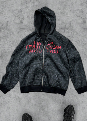 Мужская толстовка больших размеров, с капюшоном на молнии спереди. Эта толстовка с длинными рукавами, капюшоном и спущенными плечами. Имеет стандартный подол и классический крой. Имеет застежку на молнию, кармані и кулиску. Узор выполнен в стиле готика/панк. Изготовлена из трикотажного полотна средней эластичности. Только машинная стирка.