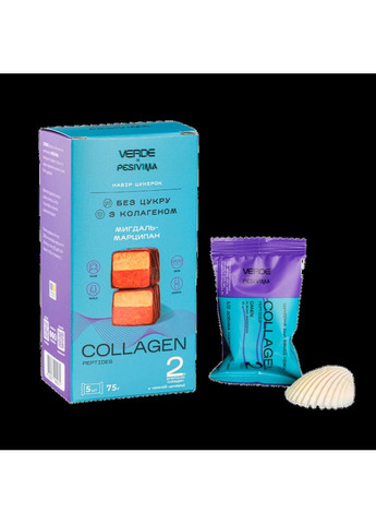 Первые в Украине конфеты с морским коллагеном. В набор входят: Конфеты «Мигдаль-Марципан» – 5 шт. Морской коллаген+миндаль+марципан – марципан из натурального миндаля создает идеальную ореховую нежность. Изысканный вкус с пользой для красоты! В наборе 5 конфет. Вес одной конфеты – 15 г. Вес набора – 75 г. Каждая конфета содержит половину суточной нормы пептидов морского коллагена I типа (2000 мг) и витамина С (50 мг), что способствует здоровью кожи, волос, ногтей и суставов. Гидролизованный морской коллаген обладает высокой биодоступностью и максимально похож на человеческий, что обеспечивает эффективное усвоение организмом. Ежегодно синтез собственного коллагена снижается на 1,5%, что вызывает потерю упругости кожи, появление морщин, выпадение волос и боли в суставах. Коллаген – это структурный белок, основной строительный компонент в нашем организме. Благодаря ему кожа сохраняет упругость и эластичность, волосы и ногти – силу и блеск, суставы – подвижность, связки и мышцы – гибкость. Поэтому употребление нашей конфеты с коллагеном поможет вам сохранить молодость, красоту и здоровье. Полезные свойства коллагена: повышение упругости и эластичности кожи; - уменьшение мелких, глубоких и мимических морщин; - укрепление ногтей, здоровье ногтевой пластины; - снижение проявлений целлюлита; - укрепление, восстановление блеска и упругость волос; - улучшение состояния суставов и повышение их подвижности; - регенерация соединительных тканей, восстановление после ожогов, хирургических и косметологических вмешательств; - поддержка здоровья десен. Питательная ценность на 15 г – энергетическая ценность – 320 кДж/76 ккал; белки 1,23 г, жиры 5,85 г, из них насыщены 1,10 г, углеводы 4,57 г, из них сахара 1,70 г, CIль 0,001.