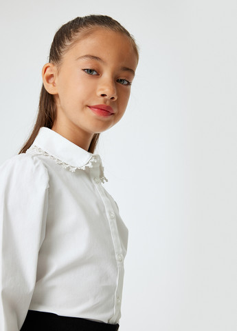 Классический и элегантный дизайн: Блуза имеет изысканный крой, идеально подходящий для школьного дресс-кода. Она выглядит аккуратно и нарядно, позволяя создавать разнообразные образы – от строгого к праздничному.