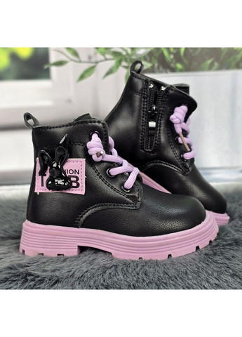 Зимние ботинки для девочки GFB выполнены из искусственной кожи черного цвета с сиреневыми шнурками и лиловой подошвой. Внутри — натуральная овчина, обеспечивающая тепло и комфорт в холодный сезон. Модель дополнена декоративной вставкой в виде зайчика и застежкой-молнией сбоку для удобного надевания. Ботинки имеют высоту голенища 8,5–9,5 см и устойчивую подошву высотой 1,5–2 см из ПВХ с рельефным протектором. Подходят для ежедневного использования зимой. Основные характеристики Бренд: GFB Материал верха: искусственная кожа Материал подкладки: овчина Материал стельки: овчина Материал подошвы: ПВХ (поливинилхлорид) Тип подошвы: рельефная Высота подошвы: 1,5–2 см Высота голенища: 8,5–9,5 см Сезонность: зима Особенности Застежка-молния сбоку Шнуровка для регулировки посадки Декоративная вставка в виде зайчика Натуральная овчина внутри Размерная сетка модели 22 — 13,5 см 23 — 14 см 24 — 14,5 см 25 — 15 см 26 — 15,5 см 27 — 16 см