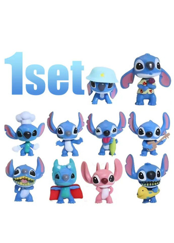 Без картонных коробок! Размер около 5см. Погрузитесь в мир приключений с набором фигурок Стич! Этот набор включает в себя уникальные фигурки любимого персонажа из мультфильма, каждая из которых имеет свой неповторимый образ.