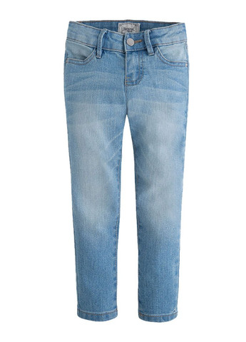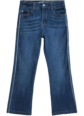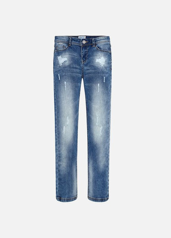 Джинсы для девочки Mayoral арт. 556. Ткань средней плотности, эластичная, с эффектом стирки и потертости. Пояс с внутренней регулировкой. Модель slim fit. Состав ткани: 68% хлопок, 20% полиэстер, 10% вискоза, 2% эластан