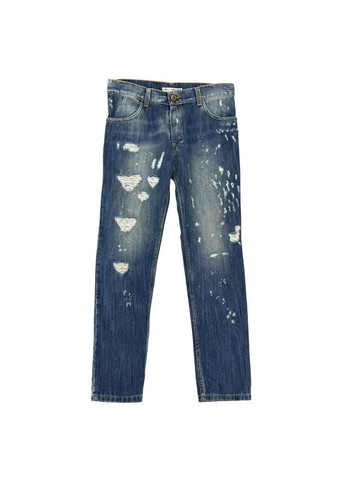 Dolce & Gabbana Junior (120138) Джинсы стильные синие с эффектом потертостей и стирки. Джинсы слегка зауженные, пояс с лямками для ремня, застежка на молнии и пуговице из лого бренда, 6 карманов, спереди нашивки. Страна бренда – Италия. Страна производства – Турция.