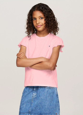 Детская футболка с капюшоном от Tommy Hilfiger выполнена в минималистичном дизайне и сделана из 100% хлопка, что обеспечивает комфорт и мягкость при носке. Футболка имеет на груди едва заметный рельефный логотип бренда. Короткорукавная, с простым кроем, что делает её универсальной и подходящей для повседневной носки. Логотип внизу добавляет фирменный акцент. Отличное качество.