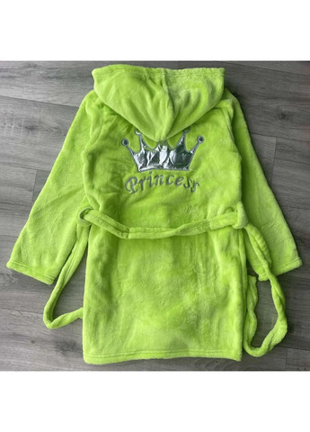 Удобный и мягкий детский халат из бахромы ярко-зеленого цвета. На спине украшен вышивкой серебристой короны и надписью Princess. Имеет капюшон и пояс для регулировки посадки. Преимущества: Изготовлен из мягкой бахромы, приятной к телу. Хорошо впитывает влагу после купания. Капюшон обеспечивает дополнительный комфорт и тепло. Яркий дизайн с короной для маленьких принцесс. Пояс удобно фиксирует халат на талии. Замеры: 146-152 см – на 10-11 лет – длина целого халата 71 см.