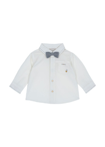 Рубашка с длинными рукавами и съемным галстуком-бабочкой. Особенности: материал - 100% хлопок; в области груди накладной карман с вышивкой; классический воротник; галстук-бабочка пристегивается на пуговицы; спереди и на манжетах застежки - кнопки.