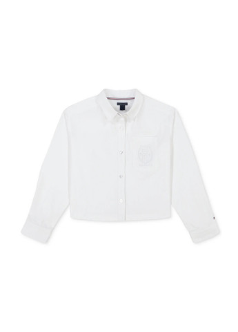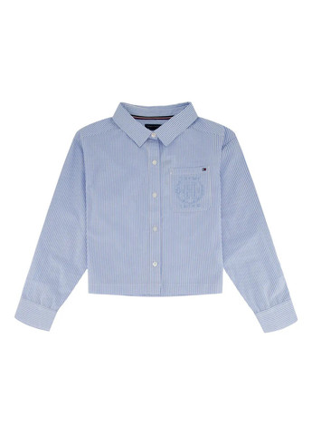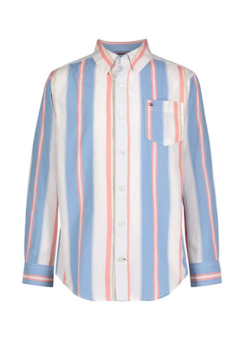 Детская рубашка Tommy Hilfiger. Стильная детская рубашка от Tommy Hilfiger выполнена из плотной хлопковой ткани. Застегивается на пуговицы. Рубашечный воротник. Манжеты на пуговицах. Накладной карман на груди с вышитым логотипом бренда. Флажок бренда вышитый на рукаве. На спинке есть складка. Отличное качество.
