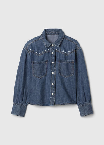 Рубашка из хлопчатобумажной ткани с короткими рукавами, воротником, пуговицами спереди и кокеткой сзади.