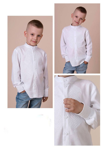 Белая рубашка с белой вышивкой для мальчика – классический элемент гардероба, который подойдет как для торжеств, так и для школьных будней. Изготовлена из качественной, дышащей ткани, она обеспечивает комфорт в течение всего дня. Имеет аккуратный воротничок, удобный крой и застегивается на пуговицы. Стильный и элегантный дизайн делает рубашку универсальным выбором для любого образа.