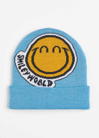 Шапка-бини вязаная из мягкого трикотажа с принтом, двухслойная.