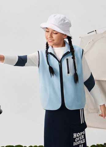 Этот пушистый флисовый жилет предназначен для девочек. Он обеспечивает тепло и комфорт для повседневной носки. Жилет имеет стандартный крой и застегивается на молнию. Он включает карман. Ткань слегка тянется и имеет стандартную форму подола. Вырез горловины представляет собой воротник, а планка — молнию.