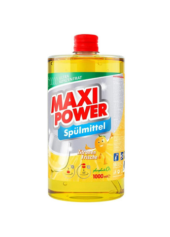 Средство для мытья посуды Maxi Power (Макси Павер) Лимон быстро и надежно справляется с жиром и грязью, хорошо смывается и оставляет посуду скрипящей и блестящей. Основные преимущества: уникальная формула на основе соды отмывает посуду до блеска бесфосфатный, безопасный состав бережет ваши руки от раздражения качественное средство не оставляет на поверхностях фенольной пленки приятный аромат лимона не надоедает каждый день концентрат втрое экономичнее обычных средств Характеристики Объем: 1 л Производитель: Maxi Power, Украина.
