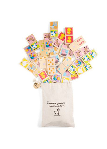 Настольная игра New classic toys Домино животного — идеальная игра для самых маленьких. Он состоит из 28 двухсторонних домино с изображением дружелюбных домашних животных с одной стороны и точек с другой. Игра в эту игру – отличное занятие для развития мелкой моторики, навыков решения проблем и тренировки логического мышления. Поощряет социальную игру, в то время как дети развивают навыки распознавания и языка. Правила игры: положите все домино на стол лицевой стороной вниз и перемешайте. Каждый игрок берет 6 домино, если игроков больше трех, каждый игрок должен взять только 3. Не разрешайте другим игрокам видеть ваши домино! Игроки поочередно подбирают фигуры домино. Побеждает тот, кто первым избавится от домино. Поставляется с хлопковой сумкой для удобного хранения. Подходит для детей от 3 лет.