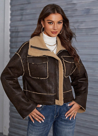 Зимняя дубленка SHEIN ICON. Эта дубленка со стандартным подолом выполнена в однотонном шоколадно-коричневом цвете. Подкладка обеспечивает тепло. Дополнена контрастной отделкой из искусственного меха и карманами. Уход: машинная стирка, не подвергать химчистке. Подходит для зимних температур.