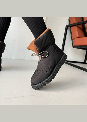 Черные зимние сапоги-дутики. Верх плащевка, середина и стелька утеплены натуральным мехом. Пятка и носик укреплены, держат форму. Очень удобные и тёплые, хорошее качество.