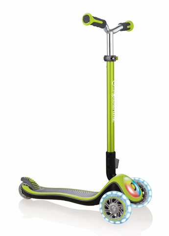 Детский самокат Globber Primo Foldable Lights подходит для детей от 3 лет. Он очень легкий благодаря алюминиевой раме. Усиленная платформа с рельефным покрытием надежно фиксирует ногу ребенка во время движения. Благодаря мягким колесам самокат имеет правильное сцепление с дорожным покрытием и едет мягко и бесшумно. Малышу обязательно понравятся мерцающие огоньки на передних колесах. Трехколесный самокат более устойчив и на нем легче передвигаться маленьким детям. Управление самокатом происходит по принципу балансирования. При наклоне тела ребенка влево или вправо наклоняется руль, и самокат меняет направление движения. Особенностью модели Globber Primo Foldable Lights является быстрое и компактное складывание и наличие системы блокировки передних колес. Особенности: легкая и прочная конструкция рамы, руль из анодированного алюминия с удобными ручками из очень прочного материала TPR, руль регулируется по высоте в 3 положениях: 67,5 - 72,5 - 77,5 см, усиленный металлический каркас платформы, широкая двухцветная платформа из композитных материалов с нескользящей поверхностью, запатентованная система блокировки поворота передних колес - если нажать кнопку на передней части самоката, то самокат будет ехать только прямо, новая система быстрого складывания позволяет удобно хранить и переносить самокат в сложенном виде, колеса изготовлены из высококачественного полиуретана, они мягкие, нескользящие и обеспечивают хорошее сцепление с дорогой, размер передних колес 121 х 24 мм, размер заднего колеса 80 х 24 мм, в колесах установлены подшипники ABEC 5 Carbon, они не боятся воды и не нуждаются в регулярной смазке, в передние колеса вмонтированы светодиоды LED, не требующие батареек или аккумуляторов, колеса при движении самоката мерцают, торсионная балансировка работает за счет наклона рулевого колеса вбок, широкое крыло заднего колеса, которое действует как тормоз.