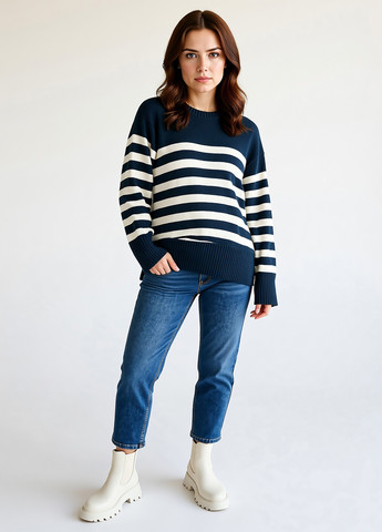 Цвет Темно-синий / Фасон Джемпер / Узор Полоска / Стиль Кэжуал / Длина рукава Длинный