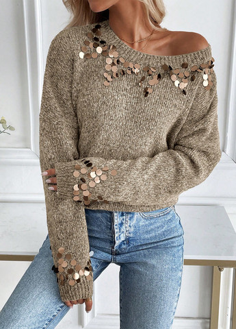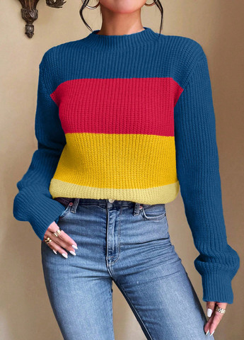 Женский повседневный трикотажный джемпер. Этот свитер имеет классический дизайн с круглым вырезом. Он изготовлен из слегка эластичной ткани. Свитер имеет стандартную посадку со спущенными плечами. Он включает в себя круглый вырез и обычную форму подола. Джемпер не имеет карманов. Он разработан для удобного ношения и высокого качества.