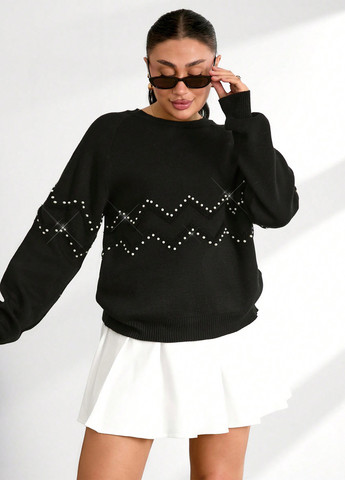 Женский свитер SHEIN Floral Pearl Decor. Этот свитер имеет круглый вырез и спущенные плечи. Он изготовлен из ткани средней эластичности. Он обеспечивает стандартную посадку.