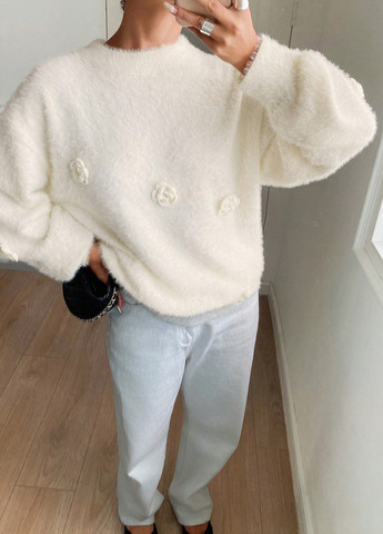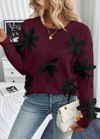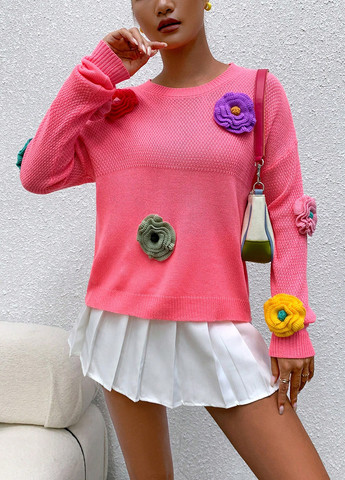 Этот повседневный свитер отличается простым дизайном с 3D-украшениями в виде роз. Имеет свободный свободный крой и ребристую конструкцию. Свитер включает рукава со спущенным плечом и обычный подол.