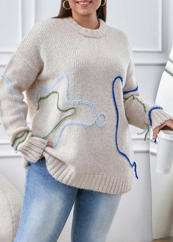 Повседневный джемпер для больших размеров. Он имеет круглый вырез и ребристую конструкцию. Свитер имеет свободный крой и обычную длину рукава. Высокоэластичная ткань обеспечивает комфорт и гибкость.