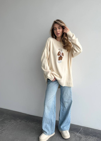 Особого внимания заслуживают объемные рукава, которые становятся главным акцентом модели. Они украшены изящной аппликацией из блестящего бисера и паеток, создающих элегантный узор с легким мерцанием. Этот декор придает джемперу изысканность и праздничное настроение, позволяя вам чувствовать себя особенной в любой ситуации.