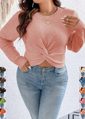 Свитер – женский, больших размеров. Этот свитер предлагает стильную и удобную посадку для женщин. Он имеет перекрученный дизайн и круглый вырез. Изготовлен из слегка эластичной ткани для удобства движения.