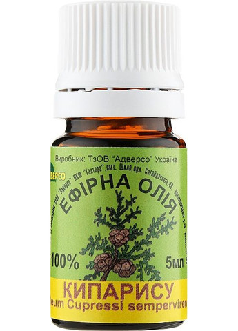 Подарите своему организму здоровье и эффективное восстановление с помощью натурального средства, созданного украинской компанией Адверсо. Эфирное масло «Кипарис» поможет справиться с простудой, кашлем, повышенным артериальным давлением, варикозом, спазмами, раздражительностью, нервным перенапряжением, улучшит качество сна. Масло активно борется с проблемами кожи, оказывает антибактериальное и заживляющее действие. ороговевших клеток, улучшает состояние кожи, делает ее гладкой, свежей и шелковистой. Продукт также уменьшает капиллярную сетку, активно борется с целлюлитом, помогает устранить проблему потливости ног. Масло кипариса непременно порадует своими волшебными свойствами и станет достойной заменой многих привычных косметических продуктов.
