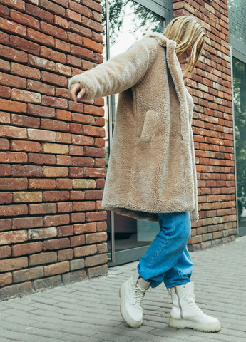 Шуба оверсайз из эко-меха Tissavel (Франция) с английским воротником. Утеплитель выдерживает -25 градусов мороза. Длина изделия 90 см. Длина рукава 65-67 см. Тип застежки шубные кнопки.