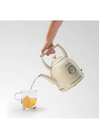 Идеальная температура для приготовления любимых напитков Чтобы получить лучшие напитки, необходимо нагреть воду до идеальной температуры. Для прибора можно выбрать температуру 60 °C, 80 °C, 90 °C или 100 °C, чтобы приготовить лучшие травяные или кофейные настои и получить максимальный результат из используемых ингредиентов. Вскипятить воду один раз и использовать в течение длительного времени времени Благодаря функции поддержания тепла чайник дольше сохраняет воду нужной температуры. Таким образом, не придется кипятить воду то и дело, чтобы выпить несколько чашек чая одну за другой. Температура сохраняется в течение 40 минут. Вскипятите большой объем воды за раз В чайнике вместимостью 1,7 л можно вскипятить воду один раз, чтобы одновременно сделать теплый напиток всем членам семьи. Кроме того, это очень удобно, когда в гости приходит компания друзей. Съемный и пригодный для мытья Чайники Gorenje оборудованы отличным фильтром против накипи. Он прекрасно выполняет свою функцию, легко снимать и мыть. Он легок в использовании, наливать воду из него удобно и без лишних капель. Автоматическое выключение Благодаря защите от выкипания чайник автоматически выключается, если его случайно включить, когда в нем недостаточно воды. Кроме того, система защиты от перегрева автоматически выключает прибор при достижении 100 °C.Сенсорное управление Идеальную температуру можно выбрать одним касанием пальца. Благодаря великолепному дизайну и простоте использования можно приготовить лучшие травяные или кофейные настои и получить максимальный результат из используемых ингредиентов. Никакого ограничения длины шнура. На подставке электропитания имеется скоба для намотки шнура, чтобы хранить его. Благодаря этому прибору легче пользоваться. Производитель может изменять свойства, характеристики, внешний вид и комплектацию товаров без уведомления.