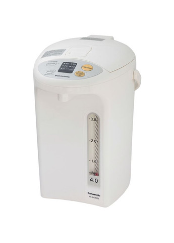 обладает всеми преимуществами обычного электрочайника и прибавляет к ним удобство термоса. Дело в том, что данное устройства относится к классу термо-потов. Поэтому вода в емкости, единожды доведенная до кипения, затем поддерживается на заданной температурной отметке. Поэтому у вас всегда под рукой будет необходимое количество горячей воды. Емкость чайника Panasonic NC-EG4000WTS составляет 4000 миллилитров. Этого объема вполне достаточно для семьи из 3-4 человек на целый день. Поэтому когда вам захочется чаю, кофе или, например, овсяных хлопьев или лапши, нужный объем воды у вас будет в наличии, уже доведенный до кипения. Электрочайник PANASONIC NC-EG4000WTS
