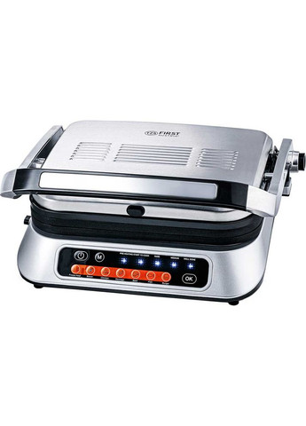 Напряжение, В 220 Оснащение Индикатор нагрева, Индикатор работы, Автовыключение, Съемные пластины, Поддон для уборки жира Тип Контактный (Прижимный) Тип нагревательного элемента ТЭН Мощность, Вт 1800 Сфера использования Для дома Размеры рабочей поверхности, см 26 х 21 Алюминий Рабочая поверхность Антипригарная, Рифлена Материал корпуса Нержавеющая сталь, Пластик Комплектация Гриль, Инструкция по эксплуатации Материал покрытия рабочей поверхности Тефлон Габариты (ВхШхГ), см 12 х 29 х 33 Габариты упаковки (ВхШхГ), см 13 х 4, 3 кг 2.6 Цвет корпуса Нержавеющая сталь Дополнительные функции Открывание на 180, Защита от перегрева Тип установки Настольные Тип управления Механическое Гриль First FA-5343-2 — мощный электрогриль на 1800 Вт, предназначенный для быстрого и равномерного приготовления блюд в домашних условиях. Рабочая поверхность размерами 26х21 см обеспечивает достаточно места для приготовления мяса, рыбы, овощей и других продуктов. Благодаря возможности открывания на 180 гриль позволяет легко контролировать процесс приготовления, обеспечивая доступ к пище во время жарки. Антипригарное покрытие из тефлона на рабочей поверхности алюминиевой гарантирует, что продукты не прилипают и легко чистятся после использования. Устройство оснащено индикаторами нагрева и работы, позволяющими всегда знать, когда гриль готов к эксплуатации, а функция защиты от перегрева обеспечивает безопасность приготовления. Поддон для сбора жира помогает поддерживать чистоту и здоровое приготовление блюд. Гриль First FA-5343-2 обладает механическим управлением и компактными габаритами, что делает его идеальным выбором для тех, кто ищет надежный и удобный электрогриль для домашнего использования. Выбирайте этот гриль для приготовления вкусных блюд с минимальными усилиями и максимальным комфортом!
