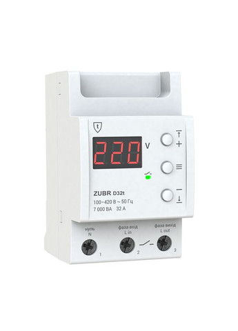 ZUBR — украинский бренд надежного электрооборудования для дома и энергосбережения История бренда ZUBR началась в 2003 году с выпуска первого терморегулятора, после чего был разработан реле напряжения. Команда инженеров компании DS Electronics объединилась вокруг идеи создания качественных, функциональных и технологично совершенных устройств, получивших высокую оценку пользователей. Сегодня производство и главный офис компании расположены в Киеве, штат насчитывает более 150 специалистов, а продукция брендов ZUBR и terneo экспортируется в страны Европы и Центральной Азии. Бренд ZUBR ориентирован на надежность, комфорт и энергоэффективность. Компания постоянно расширяет ассортимент, разрабатывает Wi-Fi решения и активно внедряет технологии интернета вещей. Принцип «умного» энергопотребления лежит в основе каждого устройства, что позволяет обеспечить высокий уровень защиты, удобства и экономии энергии в современном доме. Реле напряжение ZUBR D16, D25, D32, D40, D50, D63 Реле напряжения ZUBR серии D предназначены для защиты однофазной техники от: высокого и низкого напряжения, обрыв нулевого провода, аварийных скачков в сети. Важно: если ваше оборудование питается от инвертора или ИБП (источник бесперебойного питания) с не синусоидальным напряжением, эта серия НЕ подходит. В таком случае стоит выбрать ZUBR D2 или D2 red, которые корректно работают с модифицированной синусоидой или ее отсутствием. Особенности и преимущества: Надежная защита при обрыве нуля. Простая настройка: всего 3 кнопки. Яркий цифровой дисплей с отображением напряжения. Гибкая установка порогов срабатывания. Встроенная термозащита. Таймер задержки после стабилизации напряжения (3-600 с). Рекомендуемая задержка для компрессорного оборудования – 120-180 с. Технические характеристики (удлинная таблица): Характеристика D16 D25 D32 D40 D50 D63 Номинальный ток нагрузки, А 16 25 32 40 50 63 Максимальный ток, А (до 10 мин) 20 30 40 50 60 70 Рабочее напряжение 100–420 100–420 100–420 100–420 100–420 100–420 Диапазон верхней границы, В 220–280 220–280 220–280 220–280 220–280 220–280 Диапазон нижней границы, В 120–210 120–210 120–210 120–210 120–210 120–210 Время отключения при перенапряжении 264+ В — 0,04 с 264+ В — 0,04 с 264+ В — 0,04 с 264+ В — 0,04 с 264+ В — 0,04 с 264+ В — 0,04 с Время отключения при снижении <164 В — 0,04 с <164 В — 0,04 с <164 В — 0,04 с <164 В — 0,04 с <164 В — 0,04 с <164 В — 0,04 с Время задержки включения 3–600 с 3–600 с 3–600 с 3–600 с 3–600 с 3–600 с Монтаж На DIN-рейку На DIN-рейку На DIN-рейку На DIN-рейку На DIN-рейку На DIN-рейку Тип реле Поляризоване Поляризоване Поляризоване Поляризоване Поляризоване Поляризоване Сечение подключаемого провода, мм2 до 16 до 16 до 16 до 16 до 16 до 16 Габариты (Ш×В×Г), мм 36×85×66 36×85×66 36×85×66 36×85×66 36×85×66 36×85×66 Масса, кг 0,19 ±10% 0,19 ±10% 0,19 ±10% 0,19 ±10% 0,19 ±10% 0,19 ±10% С какими приборами стоит использовать ZUBR D: - Компрессоры - Холодильники - Бойлеры - Насосы - Розеточные группы - Освещение