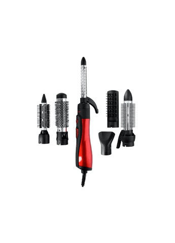 Щетка горячего воздуха. 2 режима нагрева. 2 скорости. Функция холодного выстрела. 6 насадок для укладки: концентратор, короткая щетка, щетка для завивки, термокруглая щетка, щипцы для завивки, щетка для завивки с выдвижной щетиной. Шнур питания, вращающийся на 360. Мощность: 1000 Вт.