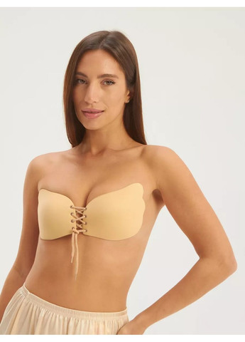 Бюстгальтер-невидимка fly bra бежевый на шнуровке с чашками бабочка. Чашка A. Основа - ткань и клейкая изнанка. Как использовать: Убедитесь, что кожа груди чистая, сухая и нет крема или масел, следов духов, дезодорантов, увлажняющих средств, лосьонов или талька перед надеванием. Снимите защитную пленку с наклейки, расположите ее на необходимом месте над соском и прижмите плотно. Для снятия аккуратно отклейте от кожи. Предостережения: Этот продукт содержит гипоаллергенные материалы, однако у некоторых людей может возникнуть чувствительность. Используйте на короткое время перед продолжительным ношением. В случае раздражения прекратите использование и промойте пораженную область чистой водой. Не используйте на чувствительной или обгоревшей коже. Не носите на ночь. Не подойдет людям с повышенным потовыделением.