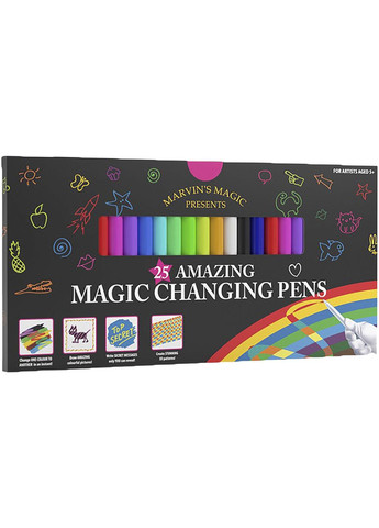 Набор магических фломастеров Marvin's Magic (Марвинс Мэджик) – отличный подарок для вашего ребенка! Британская компания Marvin's Magic, основанная в 1987 году известным фокусником и предпринимателем Марвином Бергласом, на сегодняшний день является крупнейшим в мире разработчиком и производителем наборов фокусов с "магическими отделами" в самых престижных магазинах мира и мощным штатом профессиональных иллюзионистов-демонстрантов. Очаровательные наборы Marvin's Magic – единственные, получившие официальную рекомендацию от всемирно известного Magic Circle, удостоверяющую их совершенство. Основные преимущества: 25 уникальных фломастеров подходят для создания ярких 3D-надписей, изменяющих цвет узоров, надписей, которые появляются непонятно откуда, исчезающих рисунков или имеющих другие впечатляющие особенности легко смываются Загрузите бесплатное приложение Marvin’s Magic, чтобы открыть эксклюзивные фокусы и 3D-иллюзии в Дополненной реальности, а также видео инструкции к фокусам из этого набора. Бесплатное приложение Marvin's Magic, кроме видео инструкций, содержит интересные интерактивные трюки и трюки дополненной реальности, с помощью которых можно расширить свой реквизит и создать интересную 3D иллюзию. Еженедельно выходит новый бесплатный магический трюк. Также в приложении можно разблокировать полный архив трюков (сотни видео уроков) за небольшую сумму денег. Загружай приложение Marvin's Magic в Apple Store или Google Play и нажимайте на зеленый значок. Так вы включите фотоаппарат на своем устройстве. Разворачивай набор карточек и наводи камеру на сцену. Появится удивительный Мини Марвин и покажет свои волшебные фокусы. Пока камера будет приведена на сцену, можно нажать на экран своего устройства и Мини Марвин будет даже ходить! Характеристики В наборе: 25 магических фломастеров инструкция на украинском с четкими пошаговыми иллюстрациями уникальный QR-код для разблокировки невероятных видео-инструкций в бесплатном приложении Marvin's Magic Производитель: Marvin's Magic, Соединенное Королевство.