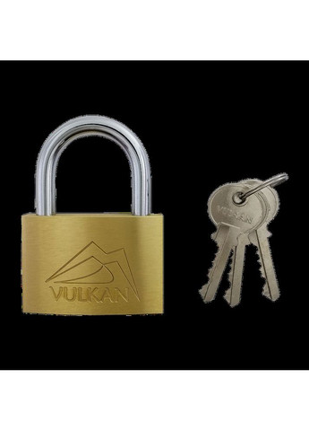 Производитель - Китай Корпус - латунь Материал дужки - закаленная сталь диаметром 8мм Материал цилиндра - латунь Форма фиксации замка - двусторонняя фиксация скобки в закрытом состоянии, автомат Цвет замка - золотистый Навесной замок BC1660 ТМ Вулкан взломоустойчив, прост. Оснащен системой автоматического замыкания. Прекрасный золотистый цвет просто впишется в любую обстановку. К замку прилагается английский ключ (в трех экземплярах).