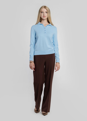 - Футболка-поло и брюки. Наиболее распространенное сочетание, которое, при этом, пользуется большой популярностью среди поклонниц делового стиля. Стоит отметить, что штаны могут быть практически любыми, потому что в данном образе их фасон не играет какой-либо роли. Благодаря воротнику футболки ансамбль приобретает элегантный вид.