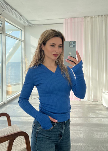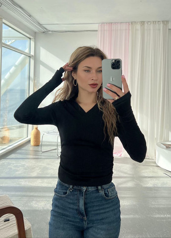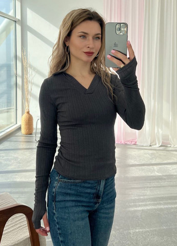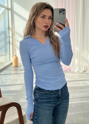 Стильный, удобный лонгслив "поло", с воротничком и V-образным вырезом. На рукавах есть вырезы для пальчиков.