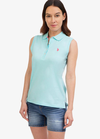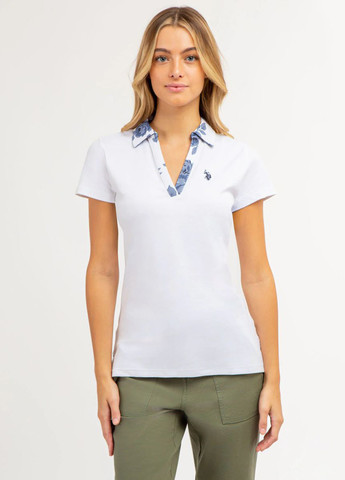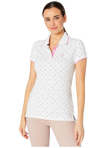 Женская футболка-поло U.S. Polo Assn. Удобная женская футболка, мягкая и очень приятная к телу ткань. Короткие рукава с контрастной отделкой. Рубашечный воротник с планкой на пуговицах. Вышитый логотип бренда на груди. Принт в горошек. Отличное качество.