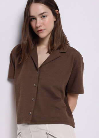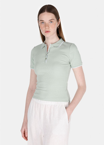 Облегающий поло из мягкого трикотажа. Отложной воротник и пуговицы сверху. Короткие облегающие рукава и прямой подол. Для размера М: ПОГ - 46 см, длина - 64 см.