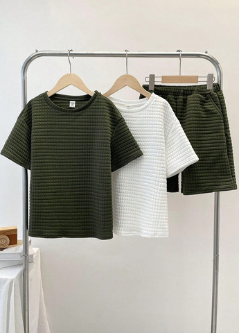 Набор для мальчика из 2 предметов имеет разноцветный принт с изображением мультяшного медведя. Лонгслив изготовлен из мягкой эластичной ткани с растяжением в 4 стороны для комфорта и гибкости. Он имеет длинные рукава, круглый вырез и обычную длину, идеально подходит для повседневной носки.