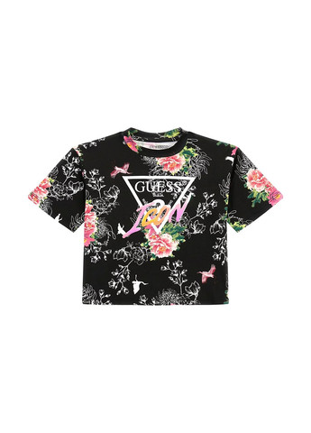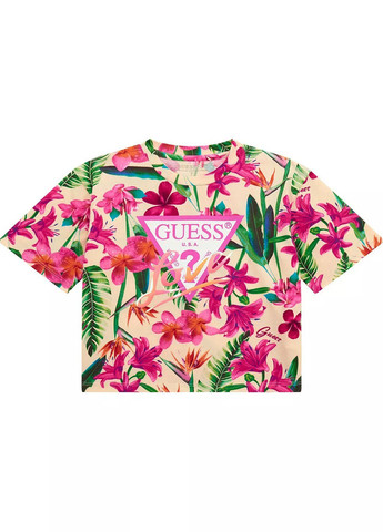 Детский комплект GUESS. Летний комплект, который состоит из футболки и шорт. Футболка с круглым вырезом и короткими рукавами. Спереди логотип бренда и оригинальная переливающаяся надпись. Шортики с широким эластичным поясом. Без утеплителя. Снизу шорты с подворотом. Прорезиненный логотип бренда сбоку. Комплект с цветочным принтом. Отличное качество.