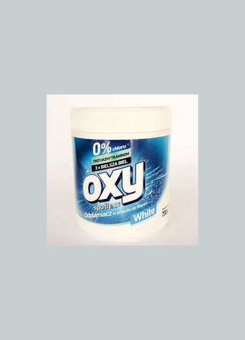 Oxy Spotless White 730г. - это универсальный порошок пятновыводителя с активным кислородом. Подходит для светлых тканей. Специальная формула с кристаллами Oxy справляется даже с устаревшими стойкими пятнами. Кроме этого, Окси Спотлес можно использовать в качестве усилителя стирки. Формула с активным кислородом проникает вглубь волокон, где непосредственно очищает загрязнения и пятна. Пятновыводитель, особенно эффективен для текстильных тканей, рубашек, футболок, белья, скатертей, полотенец и других вещей. Оxy эффективно очищает жирные пятна и устраняет неприятные запахи. Применение Oxy Spotless White: Для автоматической стирки: 30 гр. (1 мерная ложка) добавить в основное стиральное средство в отсек для порошка. Для предварительной обработки: Разведите до консистенции сметаны немного порошка; Затем нанесите смесь на пятно (подождите не более 10 мин.), а затем начинайте стирку.