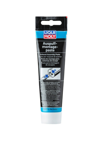 Паста монтажная Liqui Moly Auspuff-Montage-Paste (0.15 кг) Монтажная паста для выхлопной системы. Специальная высокотемпературная паста для уплотнения соединений в выхлопной системе. Газонепроницаемая. Быстрое и удобное применение. Смонтированные детали выхлопной системы не прикипают и могут быть легко демонтированы. Применение: для монтажа выхлопных систем, концевых заглушек труб, резьбовых соединений. Монтируемые детали должны быть чистыми, не ржавыми. Наносят необходимое количество пасты на детали и протирают друг относительно друга, добиваясь герметичности соединения. Можно немного намочить соединение водой для увеличения эластичности пасты. Отверждение пасты происходит от нагревания системы выхлопа при работе двигателя. Комплектация: Паста монтажная Liqui Moly - 1 шт.